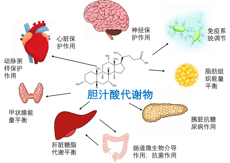 胆汁酸在肝细胞内由胆固醇转化而来,在脂质的消化吸收以及胆固醇的稳态代谢中发挥重要作用。胆汁酸除促进脂溶性食物消化外,还是重要的信号分子。其介导的信号调节通路在生物体的能量代谢、葡萄糖代谢和肝脏的再生中亦发挥重要作用,对其通路的深入研究不仅可以深化对于代谢性疾病致病机制的了解及寻找新的治疗途径与靶点,而且为高胆固醇血症、胆固醇性胆囊结石病、高甘油三酯血症、胆汁淤积肝病等疾病的治疗提供了新的方向。